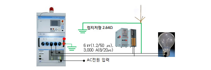 ³«·Ú¼Áö ½ÃÇè¼³ºñ(Lightning surge simulation)·Î 6 §Ç(1.2/50 §Á), 3,000 A(8/20§Á)¸¦ eca3G¸¦ ¼³Ä¡Çϰí Àü¿ø¿¡ Àΰ¡ ÇÏ¿© ½ÃÇèÇÑ °á°ú Àü±¸´Â ÀüÇô ÆÄ¼Õ ¾È µÊ °á·Ð: eca3G¸¦ ¼³Ä¡Çϰí, ³«·Ú Surge¸¦ Àü¿ø¿¡ Àΰ¡Çϸé Àü±¸´Â ÆÄ¼Õ ¾ÈµÆ´Ù.